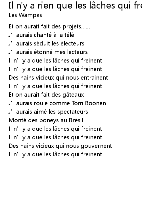 | Song | Il n'y a rien que les lâches qui freinent |