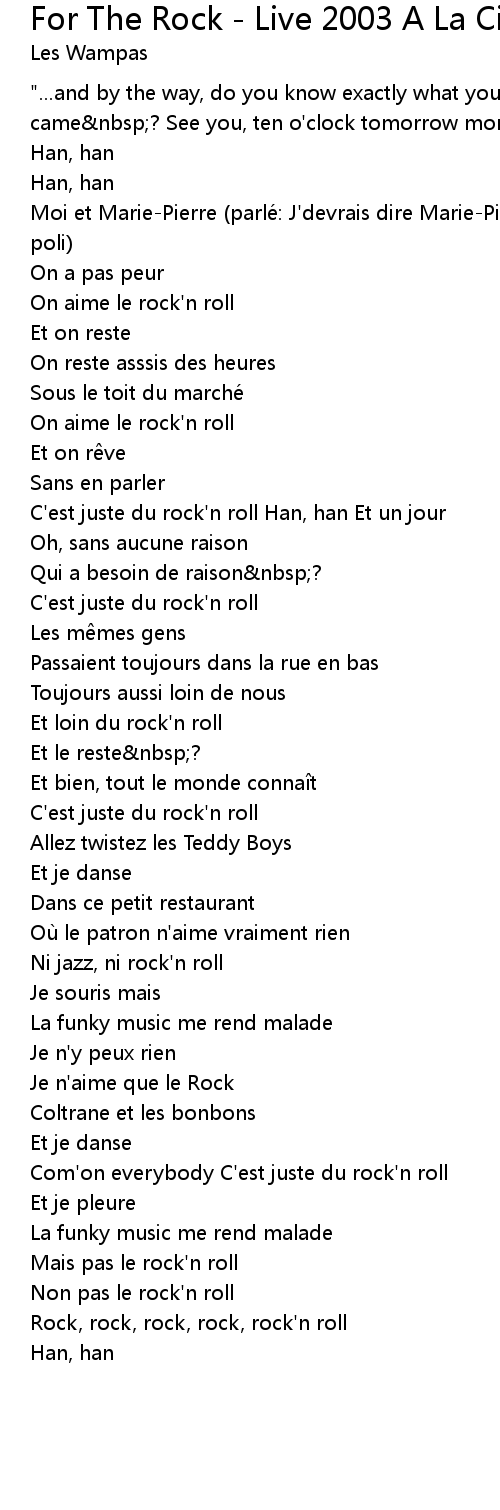 | C'est juste du rock'n roll Han, han Et un jour | |