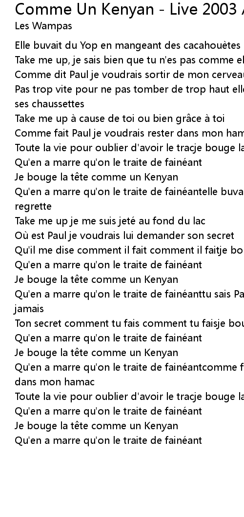 | Song | Comme Un Kenyan - Live 2003 A La Cigale |