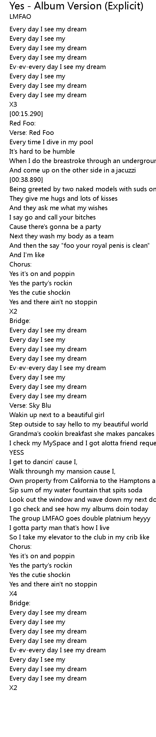 | Song | Yes - Album Version (Explicit) |