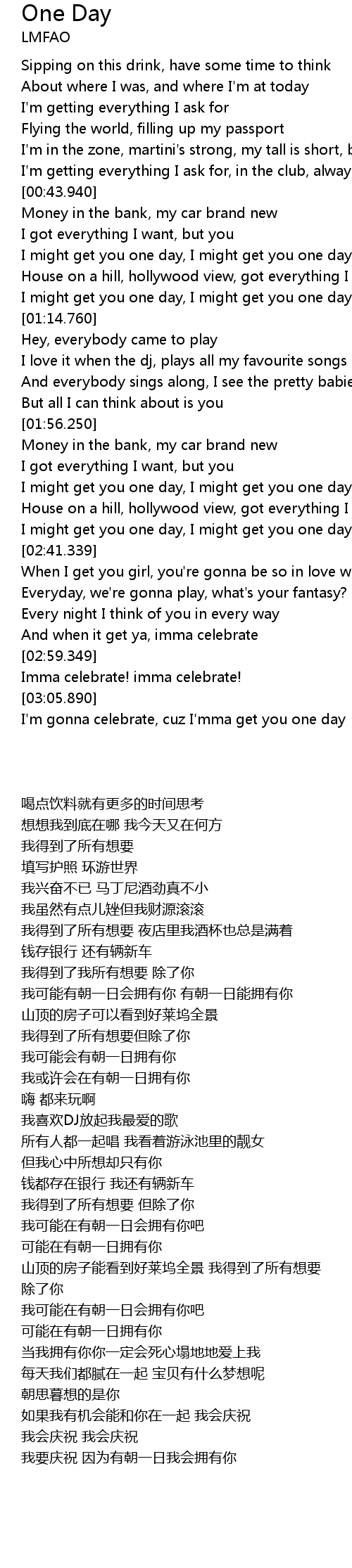 | [03:06.709] | I'm gonna celebrate, cuz I'mma get you one day |