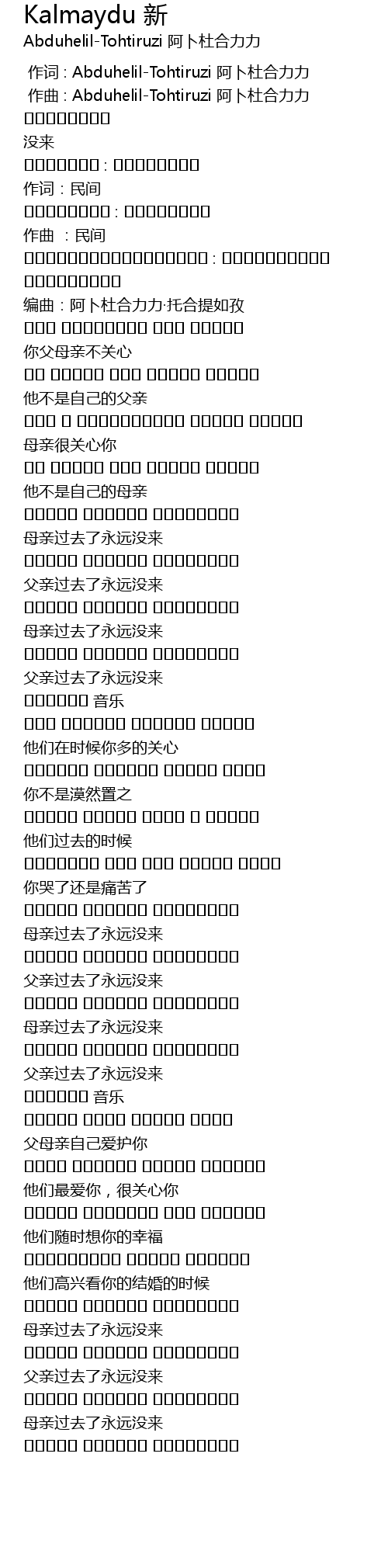 | [00:00.000] | 作词 : Abduhelil-Tohtiruzi 阿卜杜合力力 |