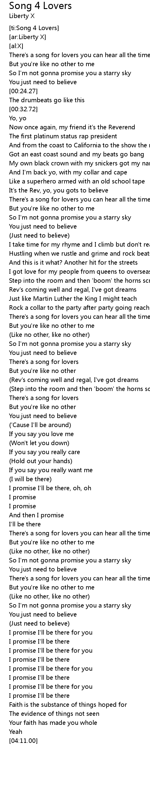 | [03:54.46] | I promise I'll be there |