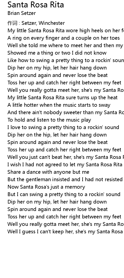 | And there ain' t nobody sweeter than my Santa Rosa Rita | |
