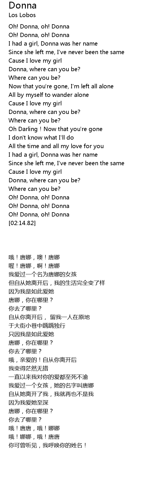 | [00:01.41] | Oh! Donna, oh! Donna |
