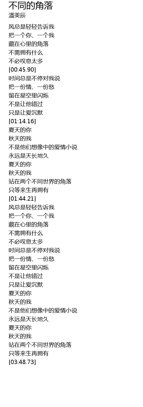 | [03:39.25] | 站在两个不同世界的角落 |
