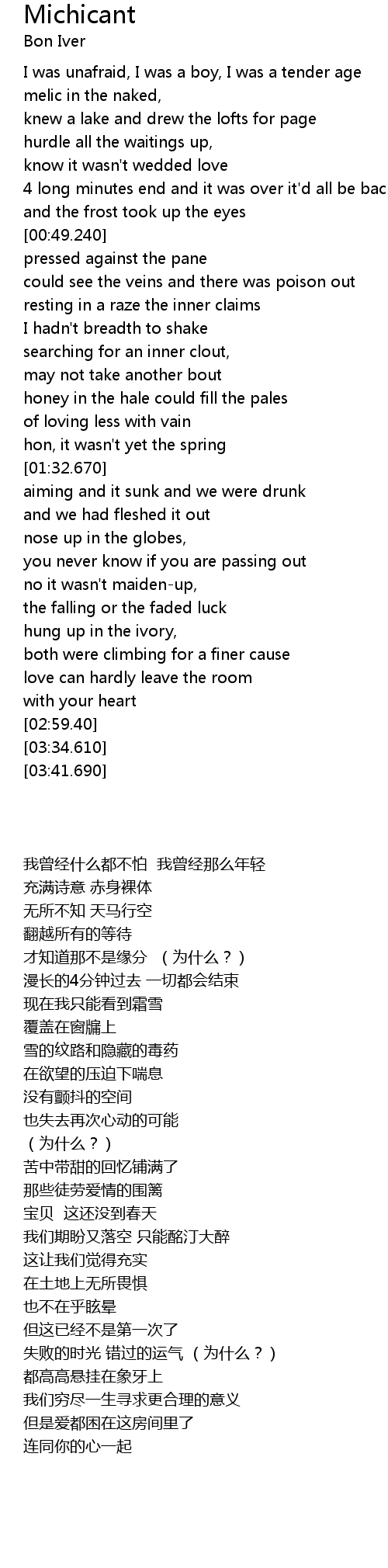 | [00:06.840] | I was unafraid, I was a boy, I was a tender age |
