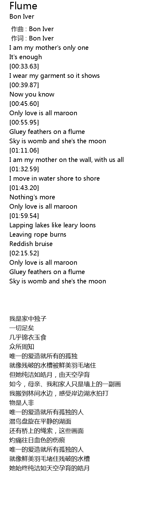 | [00:01.00] | 作词 : Bon Iver |