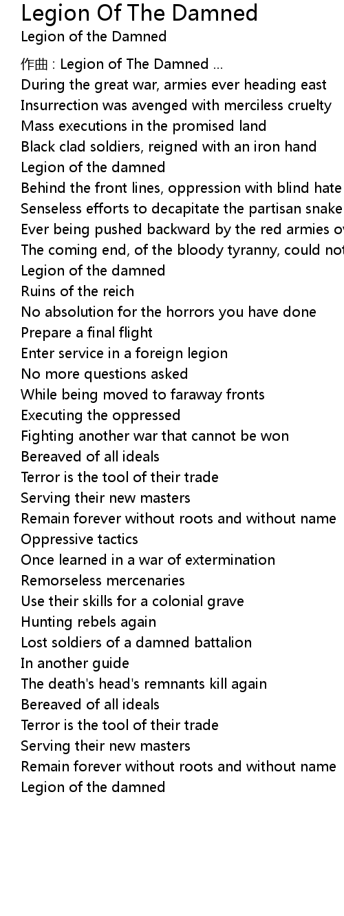 | zuò qǔ : Legion of The Damned ... | |