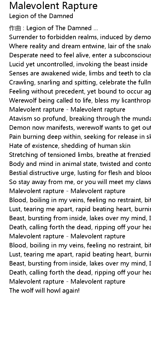 | Beast, bursting from inside, lakes over my mind, I will not defy, | |