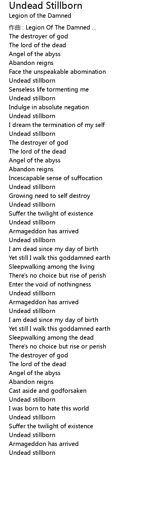| Song | Undead Stillborn |
