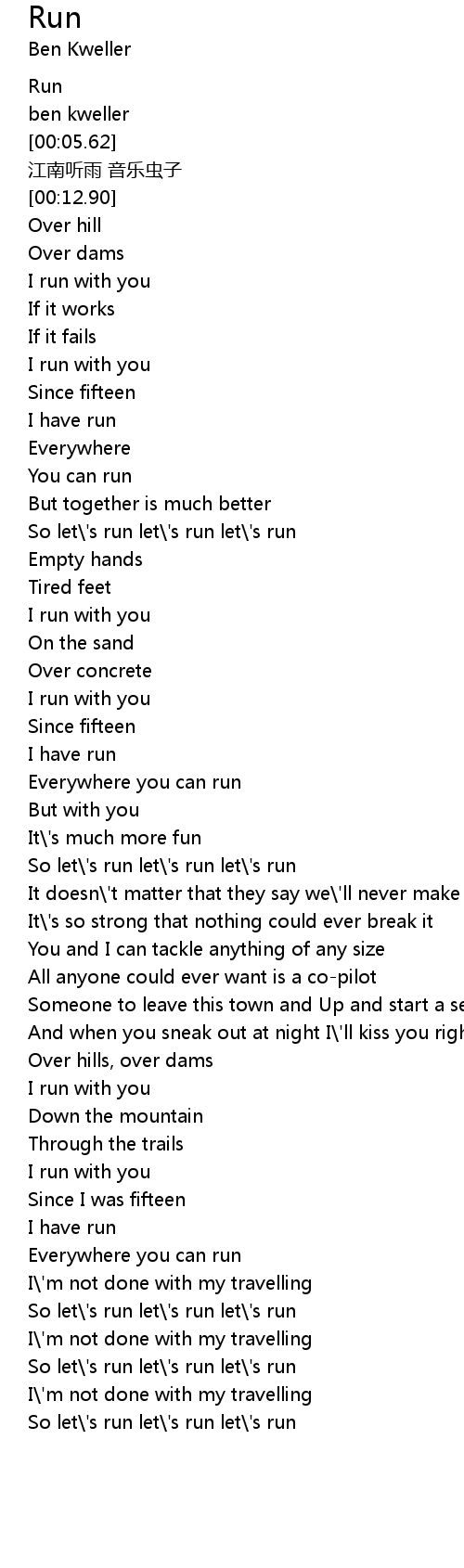 | [00:47.18] | So let\'s run let\'s run let\'s run |