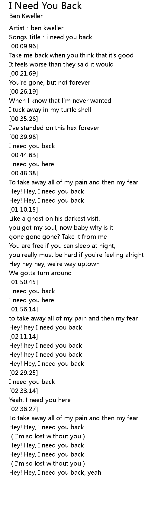 | [00:43.16] | I need you back |
