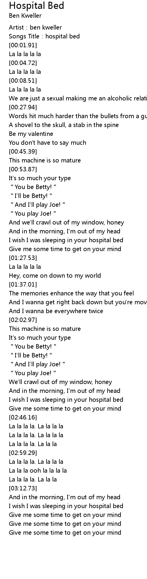 | [02:38.24] | I wish I was sleeping in your hospital bed |
