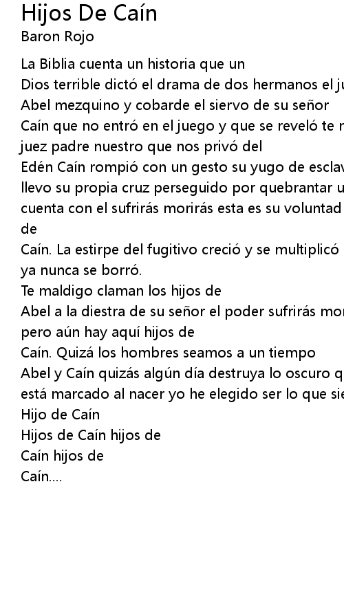 | Cai n que no entro en el juego y que se revelo te maldigo truena la voz de su juez padre nuestro que nos privo del | |