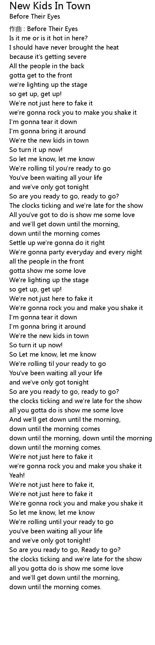 | Song | New Kids In Town |