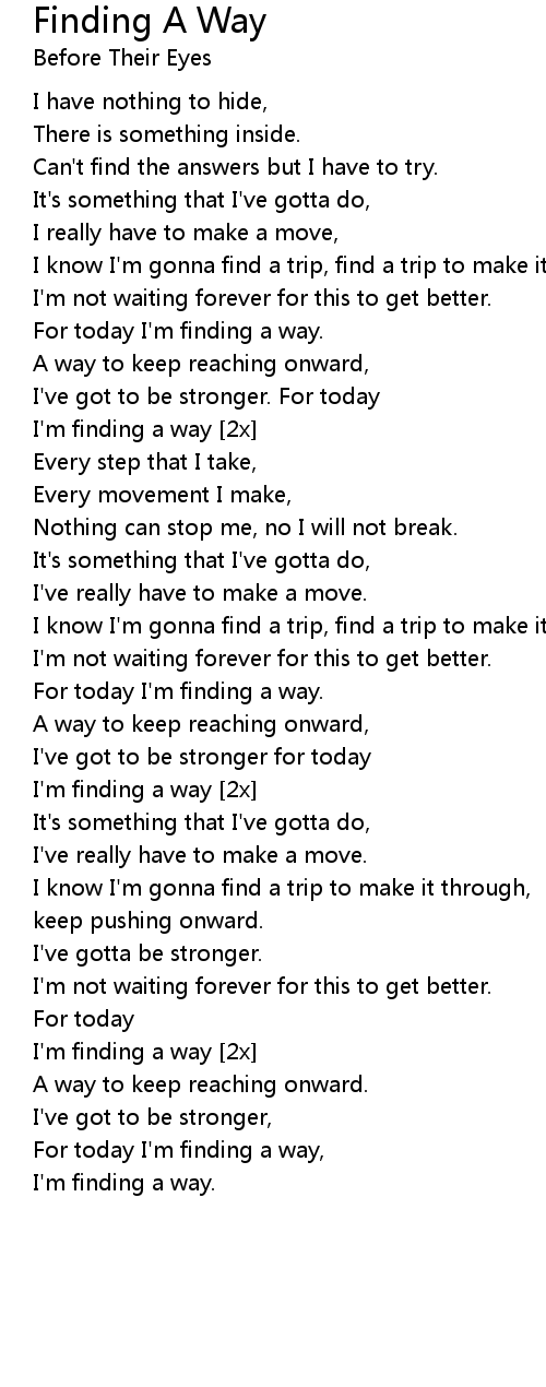 For today I'm finding a way. |