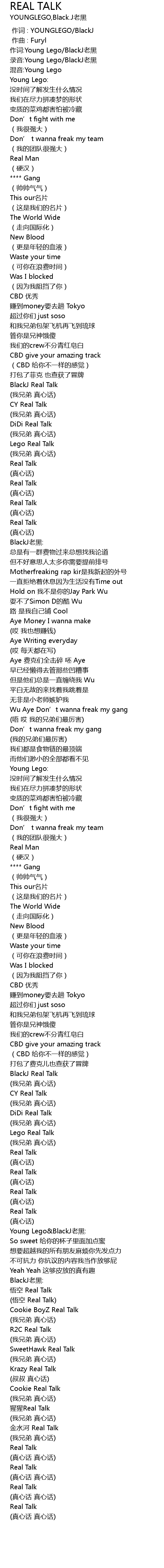 | [00:02.195] | 作词:Young Lego/BlackJ老黑 |