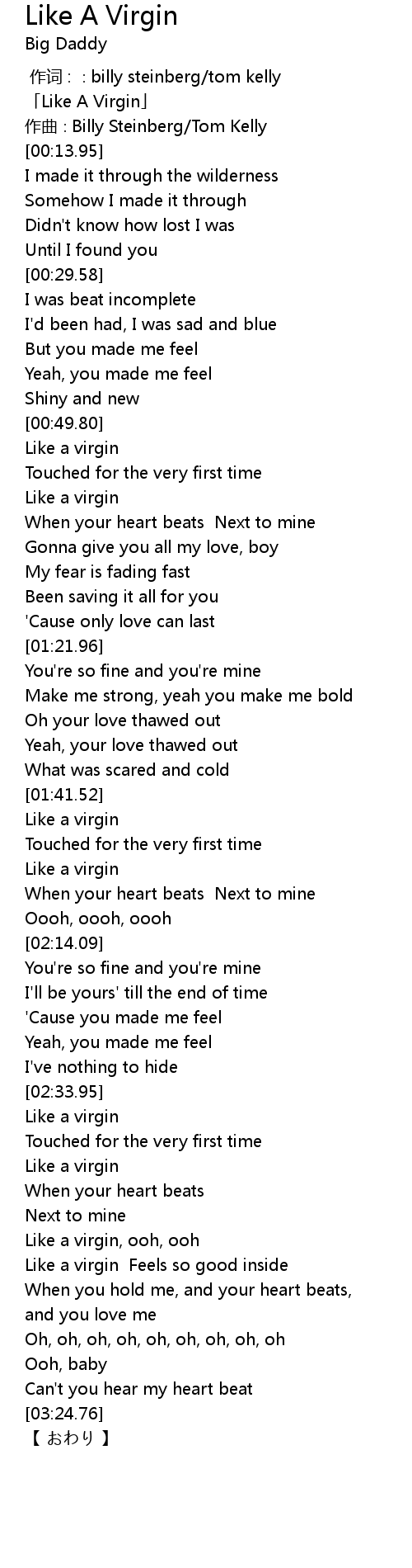 | [01:43.69] | Like a virgin |