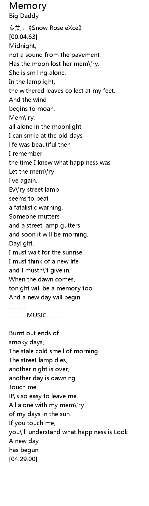 | [00:44.00] | Mem' ry, |