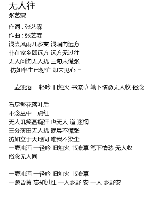 | 一壶浊酒 一轻吟 旧烛火 书潦草 笔下情愁 无人收 俗念无人同 | |