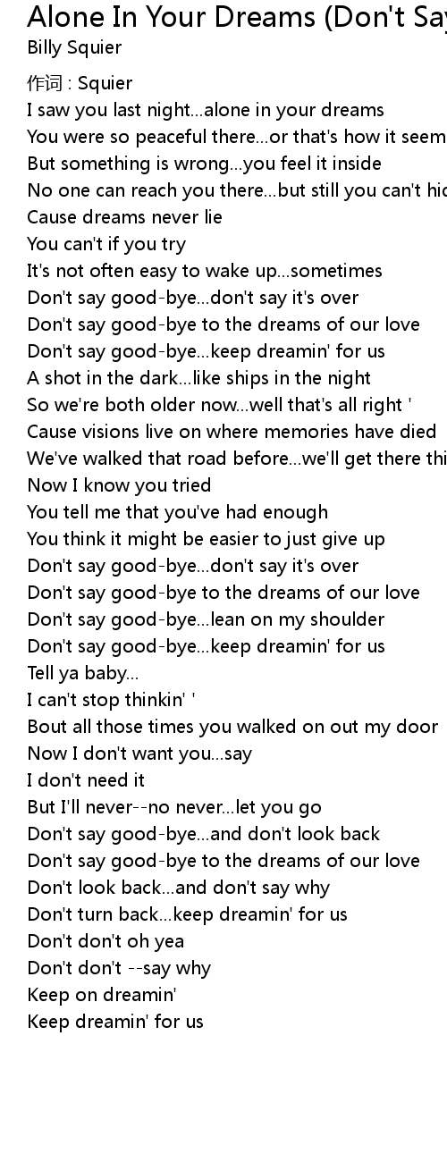 | Song | Alone In Your Dreams (Don't Say Goodbye) |