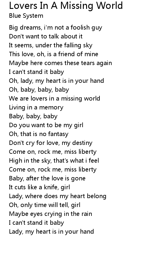 Lovers In A Missing World Lyrics