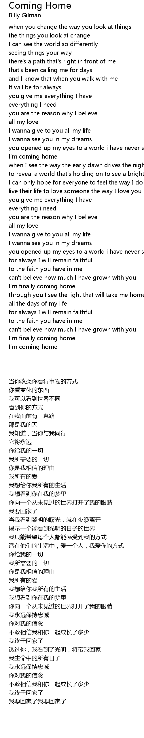 Coming Home Lyrics