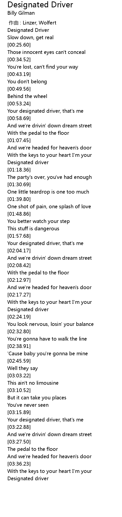 | [00:01.19] | Designated Driver |