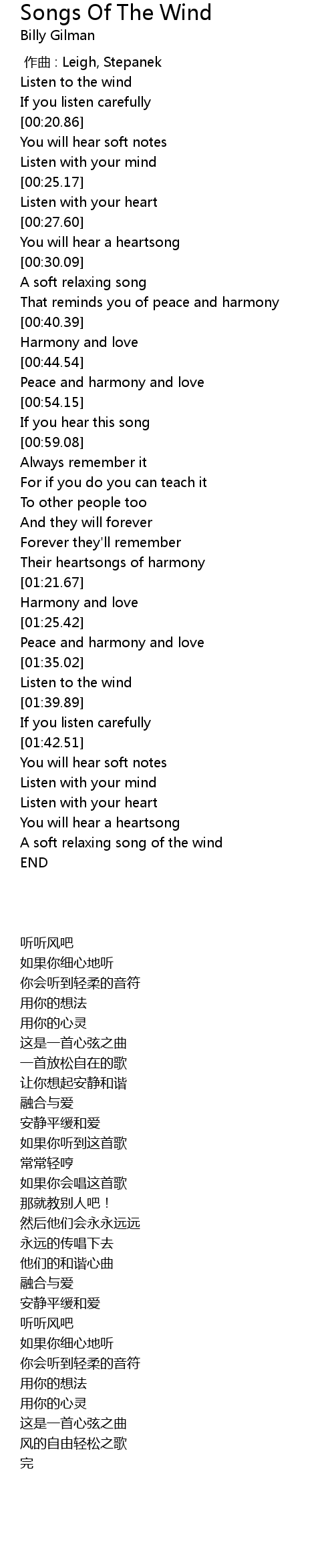 | [01:38.40] | Listen to the wind |