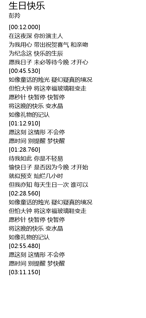 | [00:31.500] | 为纪念这 快乐的生辰 |