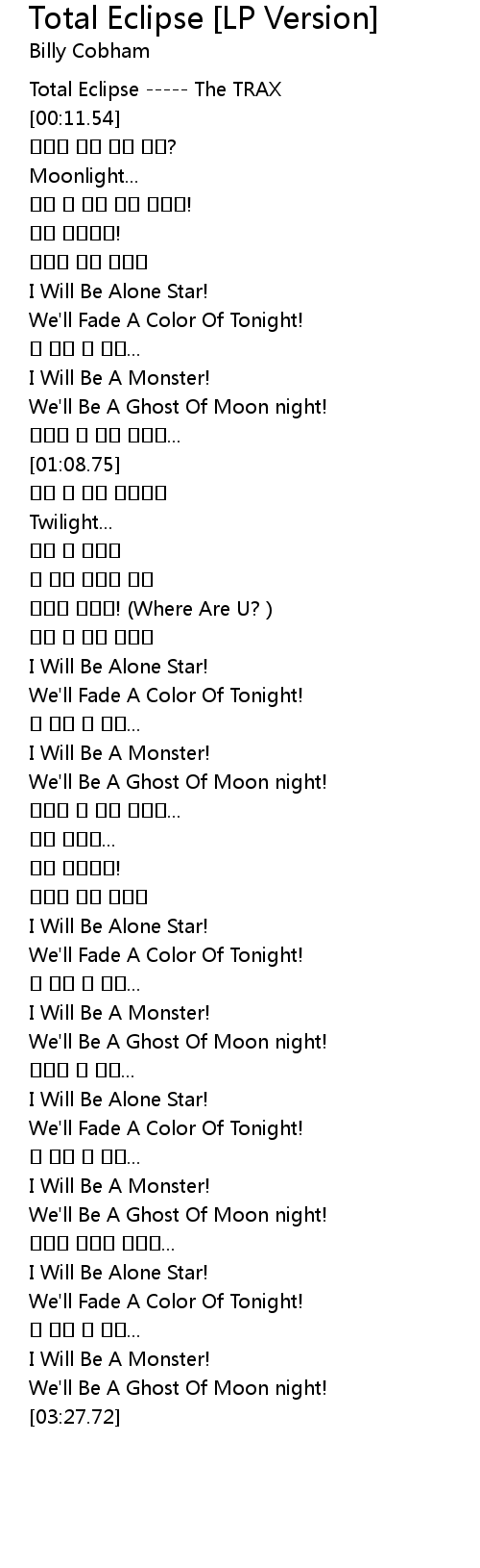 | [00:00.00] | Total Eclipse ----- The TRAX |