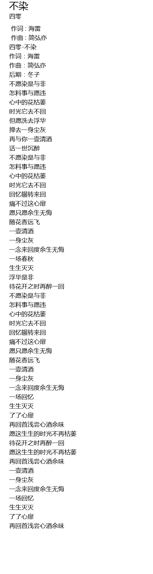 | [02:42.165] | yuàn zhǐ yuàn yú shēng wú huǐ |