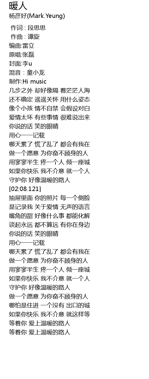 | [03:57.221] | 等着你 爱上温暖的路人 |