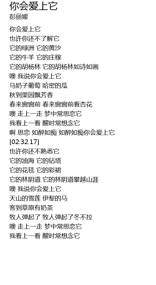 | [03:16.54] | 天山的雪莲 伊犁的马 |