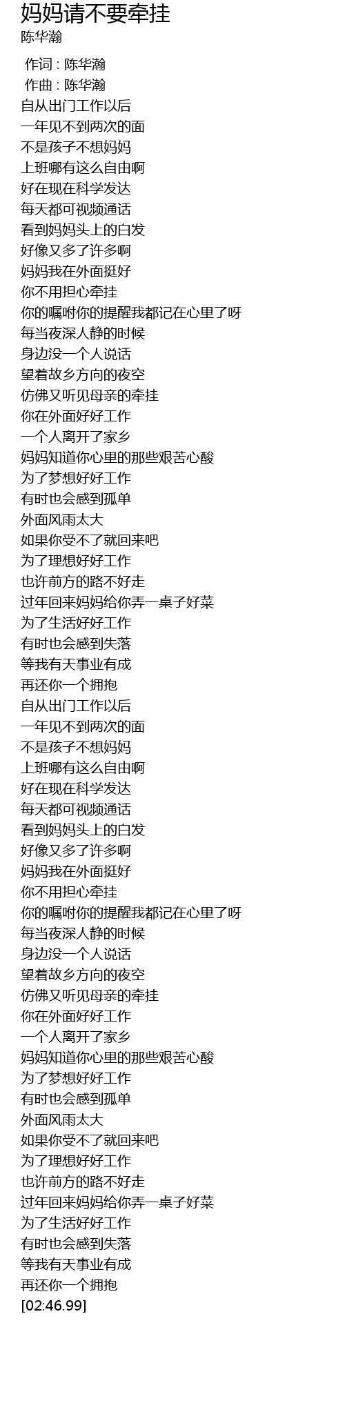 | [01:48.17] | 妈妈我在外面挺好 |
