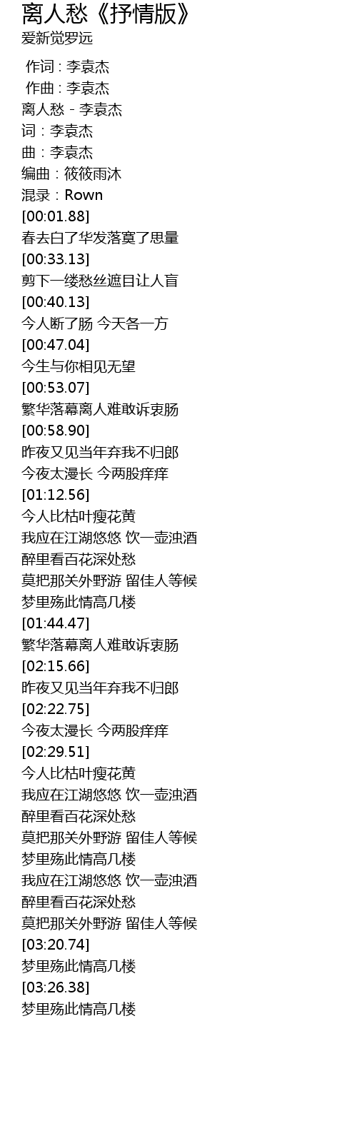 | [00:00.31] | 离人愁 - 李袁杰 |