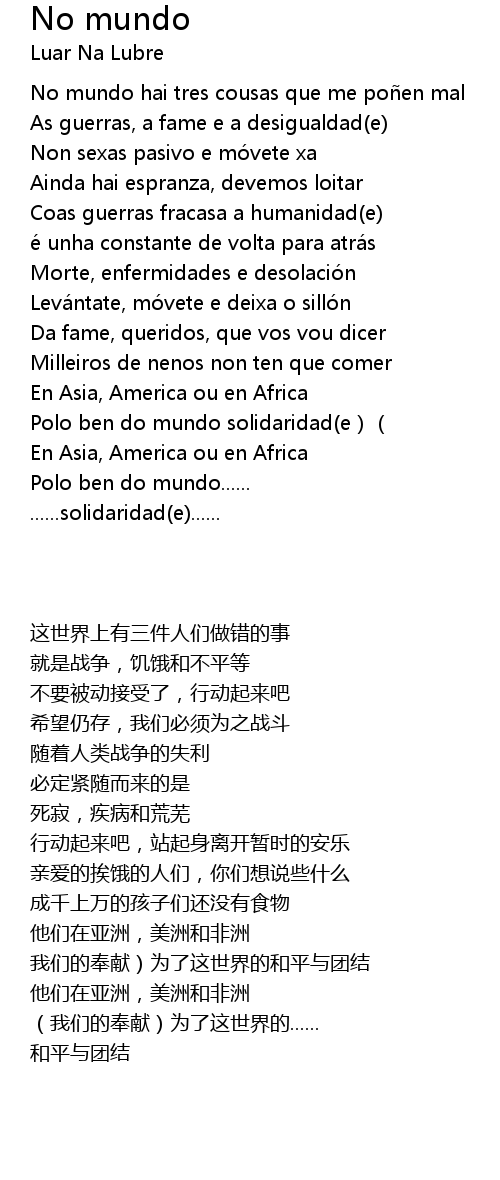 | [00:15] | No mundo hai tres cousas que me po en mal |