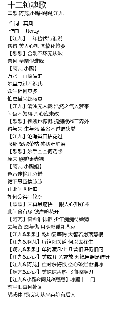 | [02:48.531] | 【江九&小踢&阿芃&烈烈】魂殿十二门 前尘旧事何处闻 |