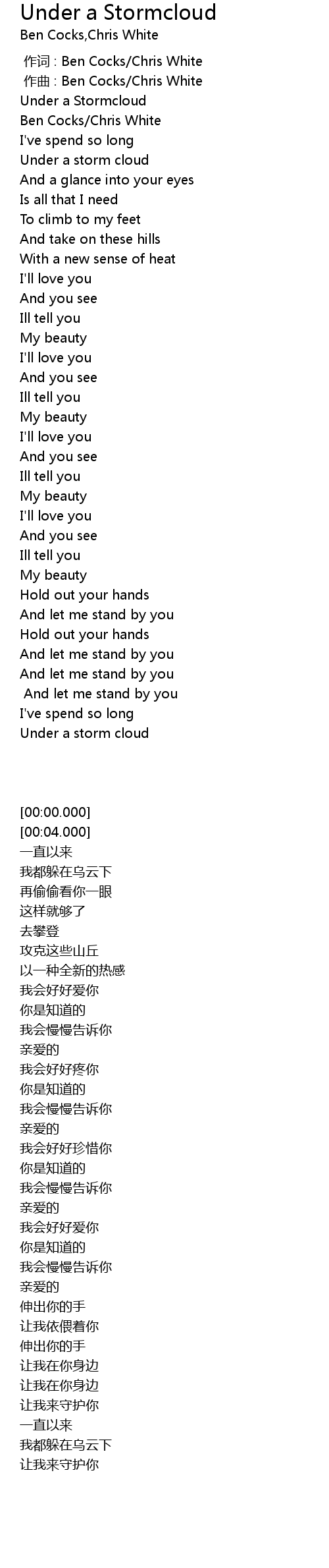 | [00:00.000] | zuò cí : Ben Cocks Chris White |