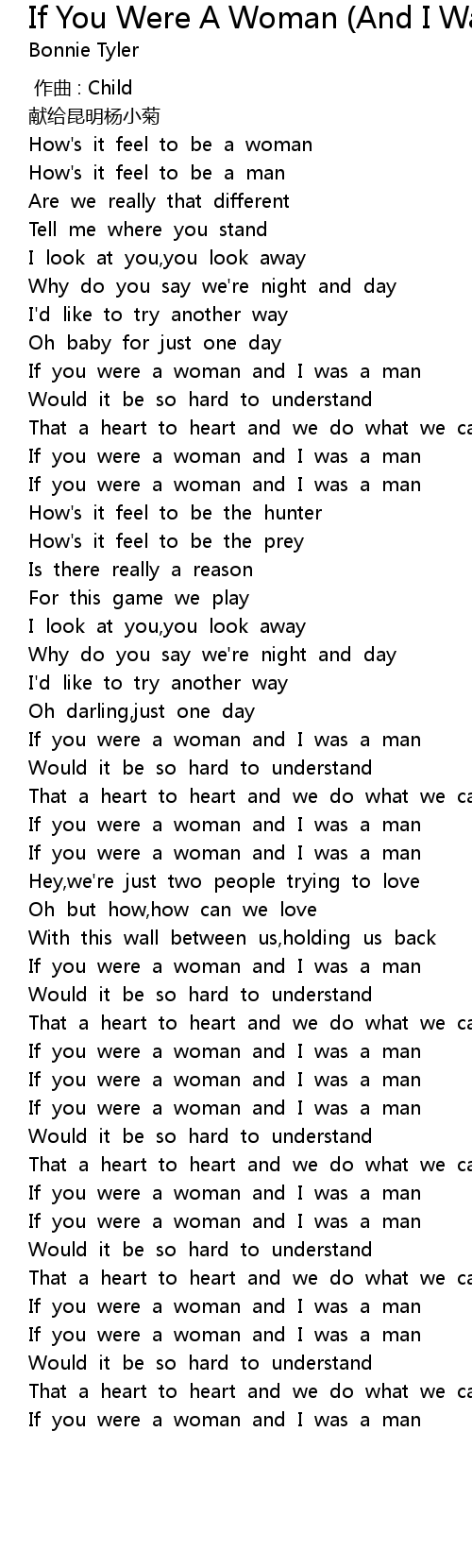 | [01:22.249] | If you were a woman and I was a man |