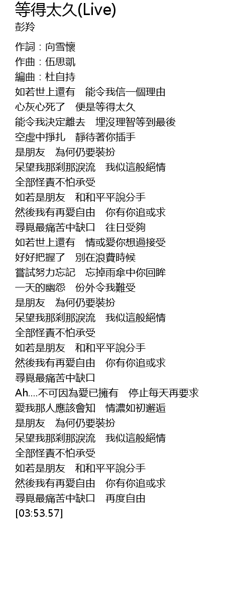 | [00:23.21] | 心灰心死了 便是等得太久 |