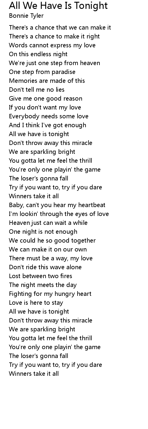 All we have is tonight |