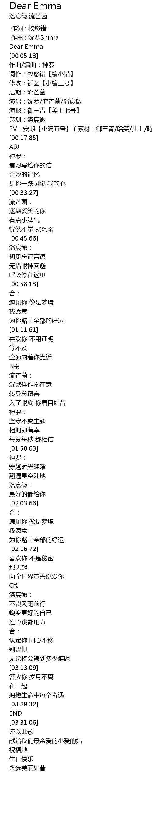 | [00:13.55] | 演唱:沈罗/流芒菌/洛宸微 |
