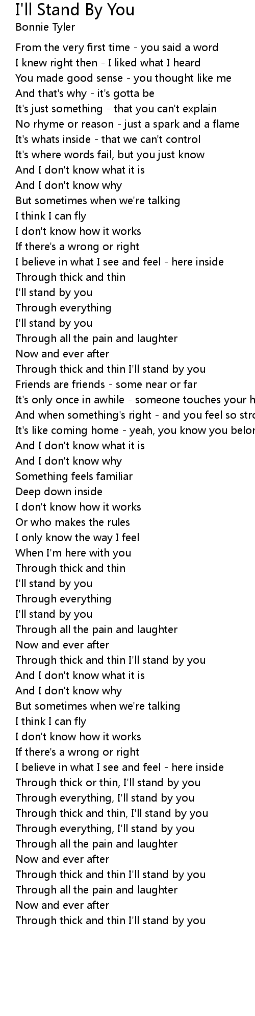 I'll Stand By You Lyrics