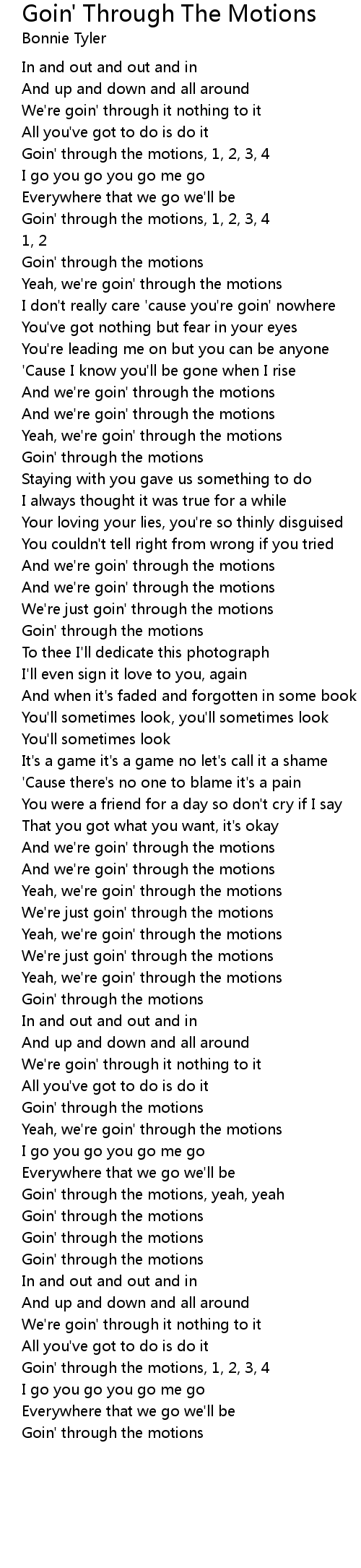 And we're goin' through the motions |
