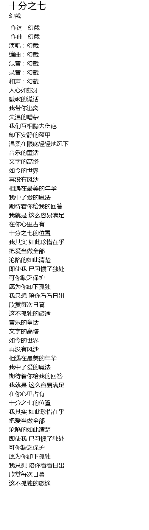 | [00:07.29] | 编曲:幻截 |