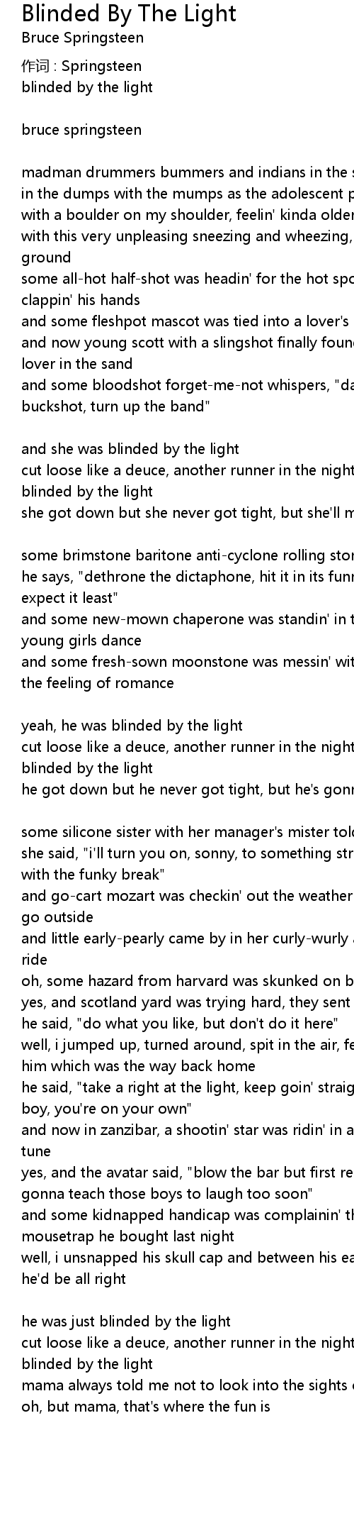 | he said, " take a right at the light, keep goin' straight until night, and then, boy, you' re on your own" | |