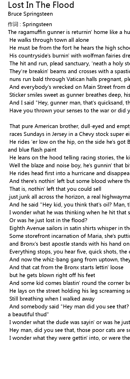 | Have you thrown your senses to the war or did you lose them in the flood?" | |