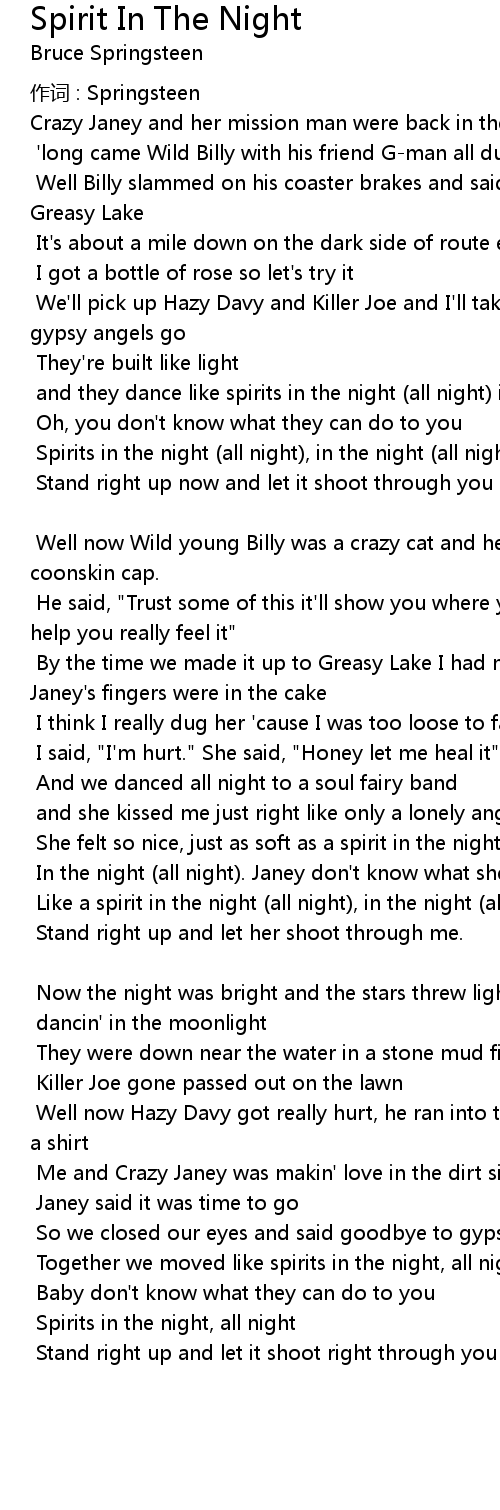 | Spirits in the night (all night), in the night (all night) | |